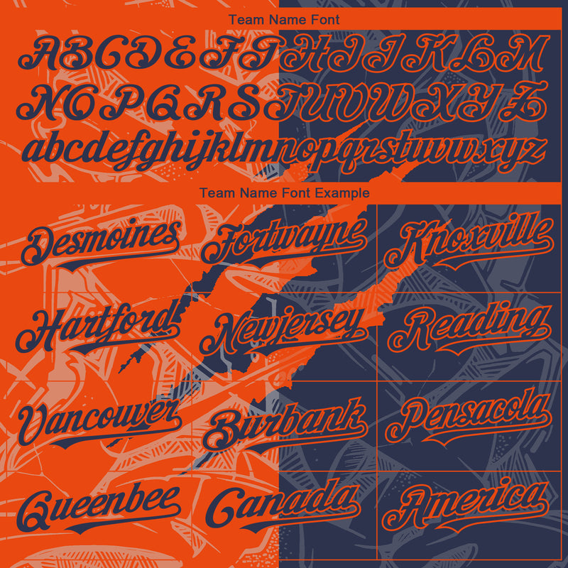Custom Graffiti Pattern Navy-Orange 3D Scratch Authentic Baseball Jersey