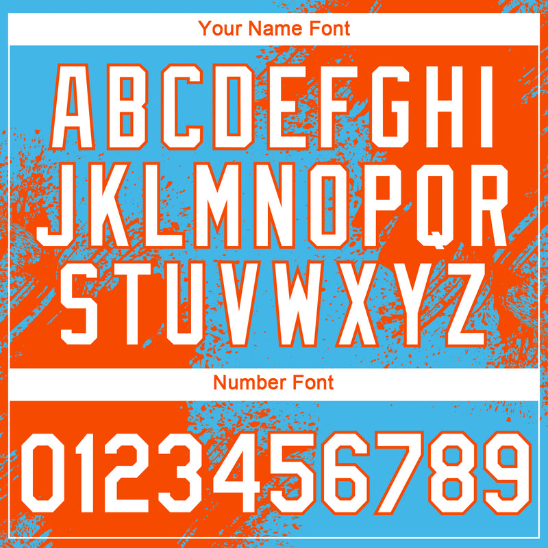 Custom Sky Blue White-Orange 3D Pattern Design Abstract Brush Stroke Performance T-Shirt