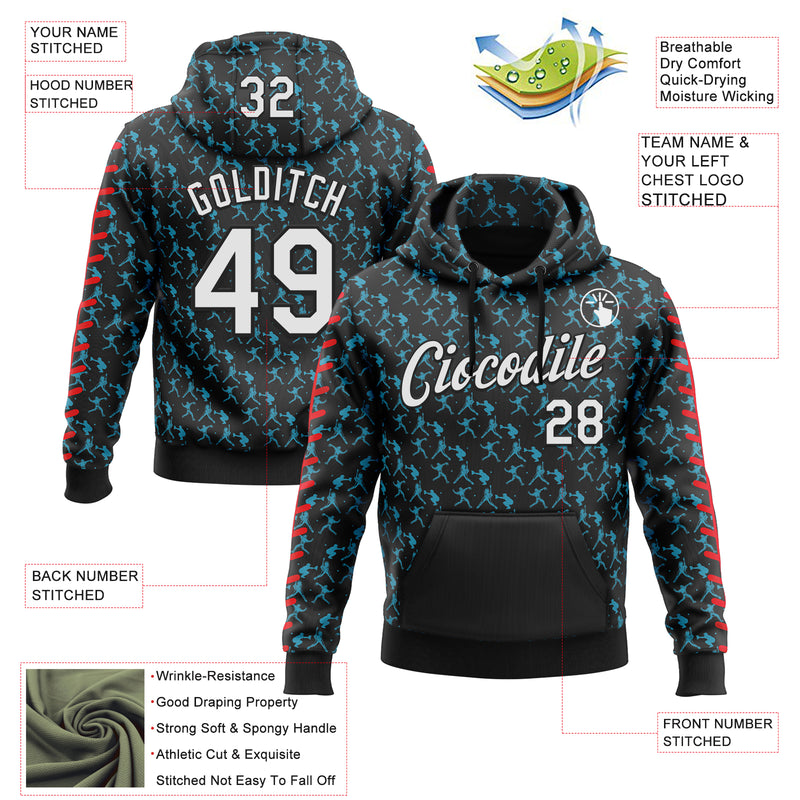 Custom Stitched Black White Panther Blue-Red Baseball Game Day Carolina Inspired Sports Pullover Sweatshirt Hoodie