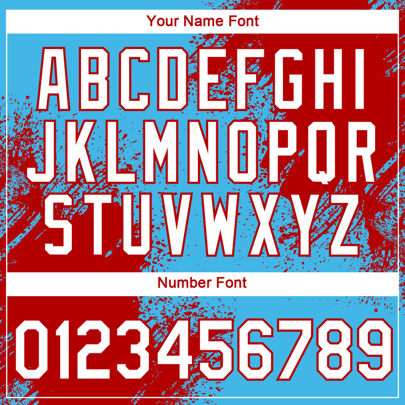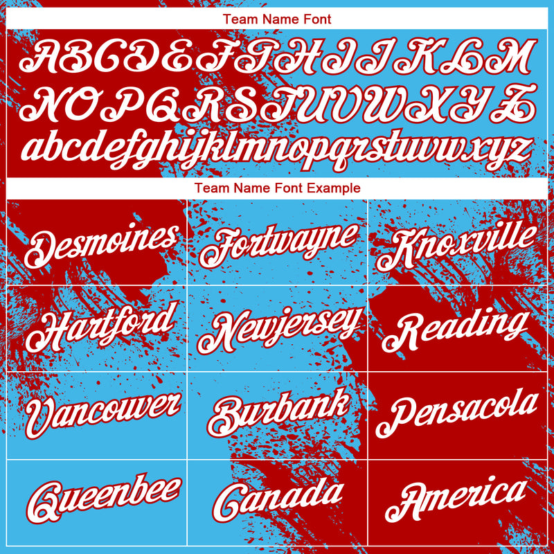 Custom Sky Blue White-Red 3D Pattern Design Abstract Brush Stroke Performance T-Shirt