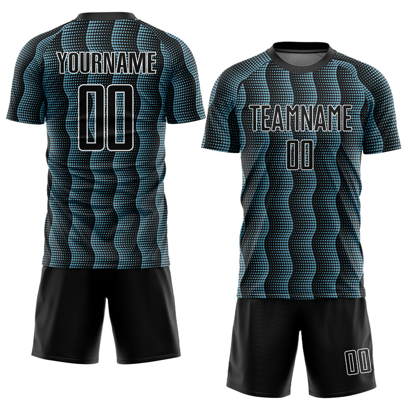 Custom Black Shadow Blue-White Geometric Shape Sublimation Soccer Uniform Jersey