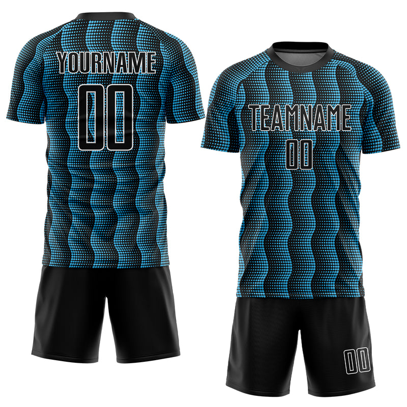 Custom Black Sky Blue-White Geometric Shape Sublimation Soccer Uniform Jersey