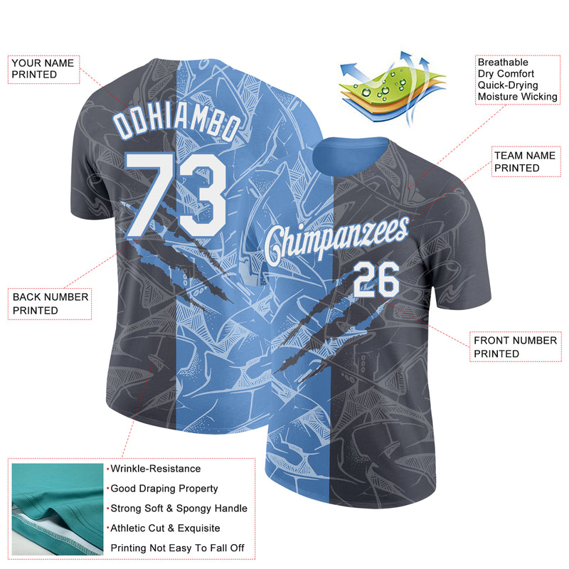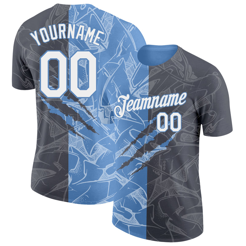 Custom Graffiti Pattern White Steel Gray-Light Blue Scratch 3D Performance T-Shirt