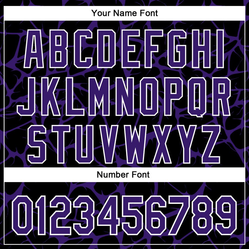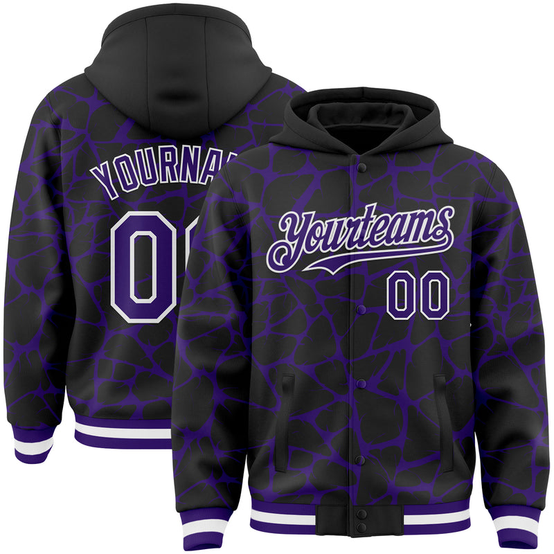 Custom Black Purple-White Abstract Network Bomber Full-Snap Varsity Letterman Hoodie Jacket