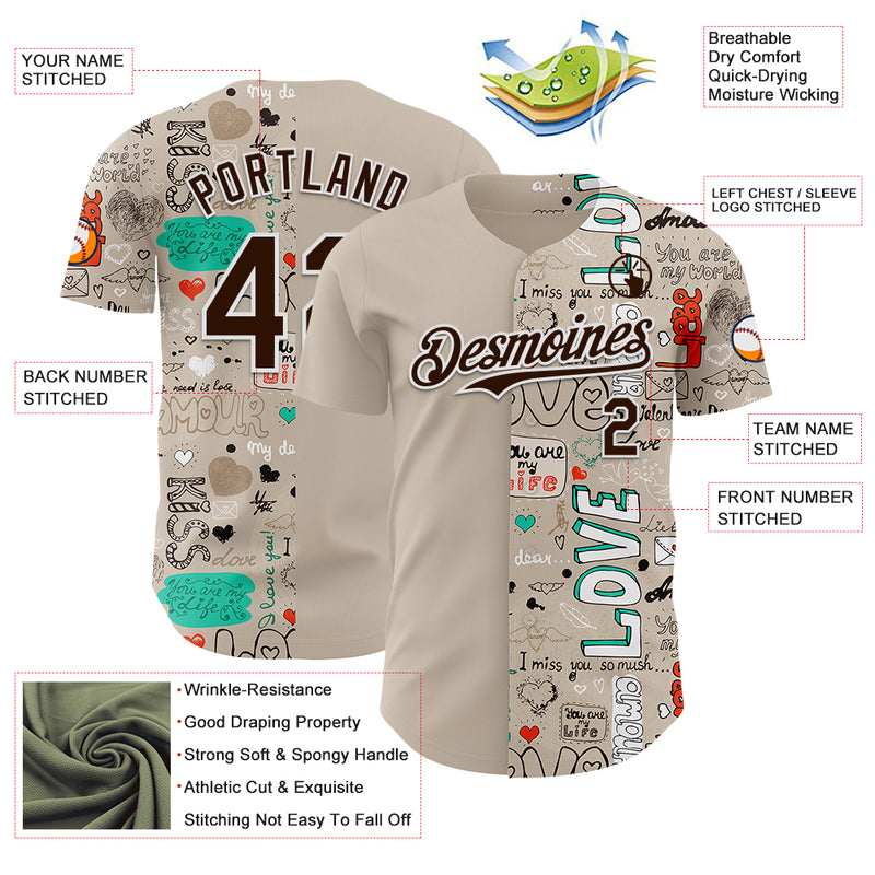 Custom Gray Brown-White Valentine's Day Love Authentic Baseball Jersey