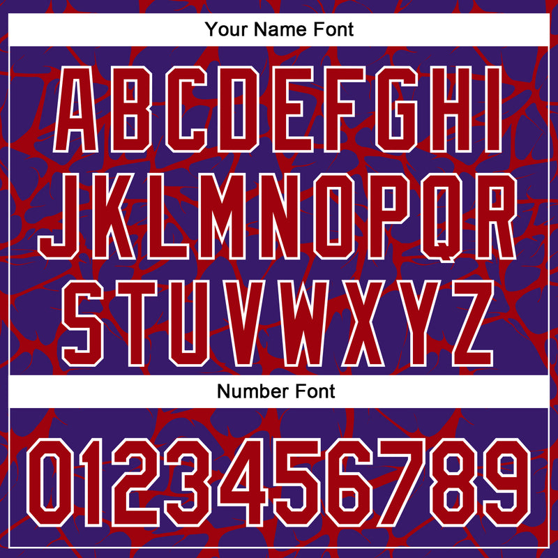 Custom Purple Red-White Abstract Network Bomber Full-Snap Varsity Letterman Hoodie Jacket