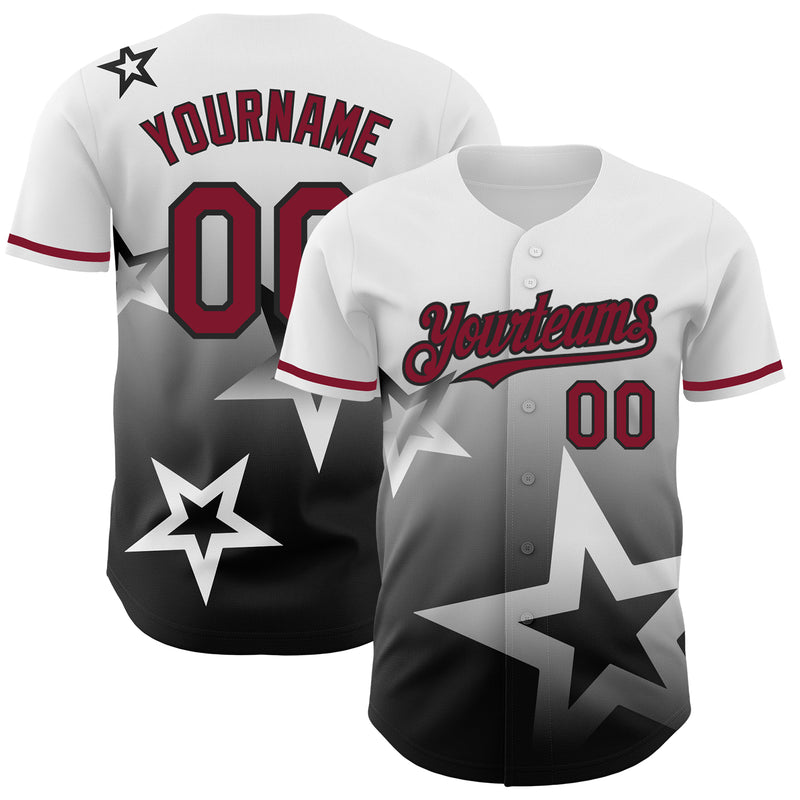 Custom White Crimson-Black 3D Pattern Design Gradient Style Twinkle Star Authentic Baseball Jersey