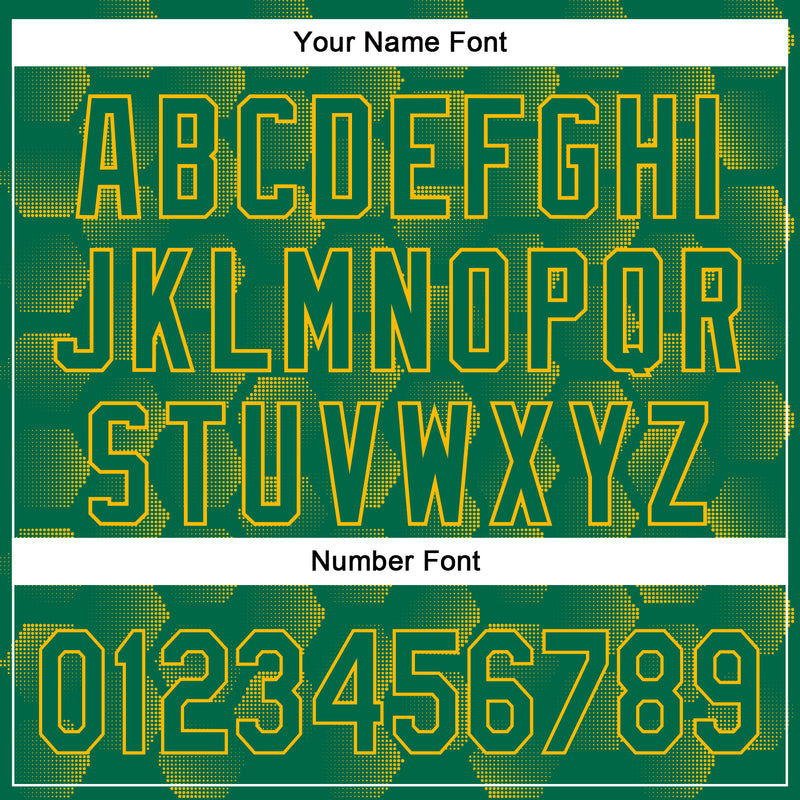Custom Kelly Green Gold 3D Pattern Design Halftone Geometric Shapes Authentic Baseball Jersey