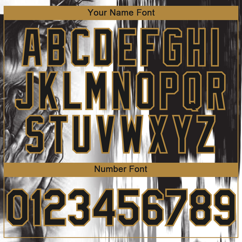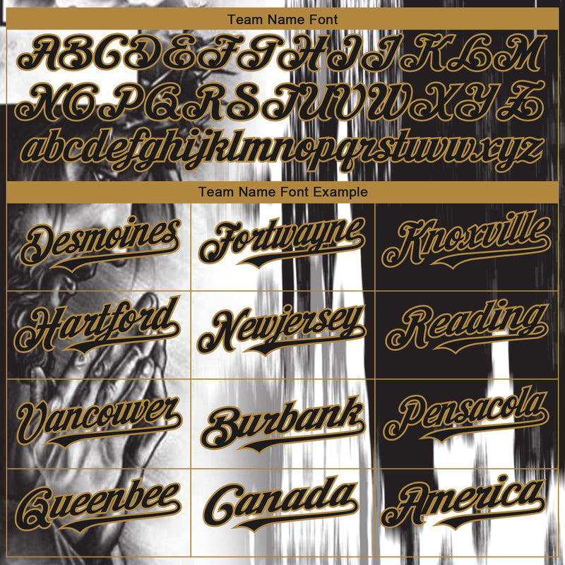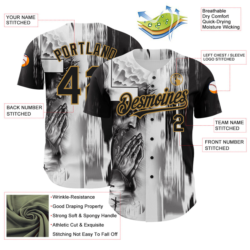 Custom White Black-Old Gold 3D Pattern Design Religion Jesus Christ Authentic Baseball Jersey