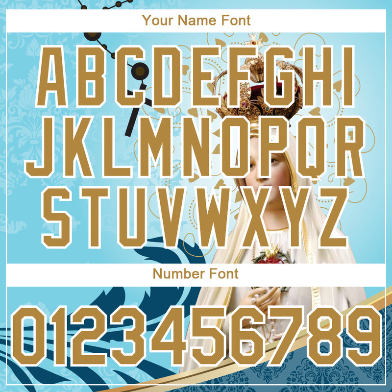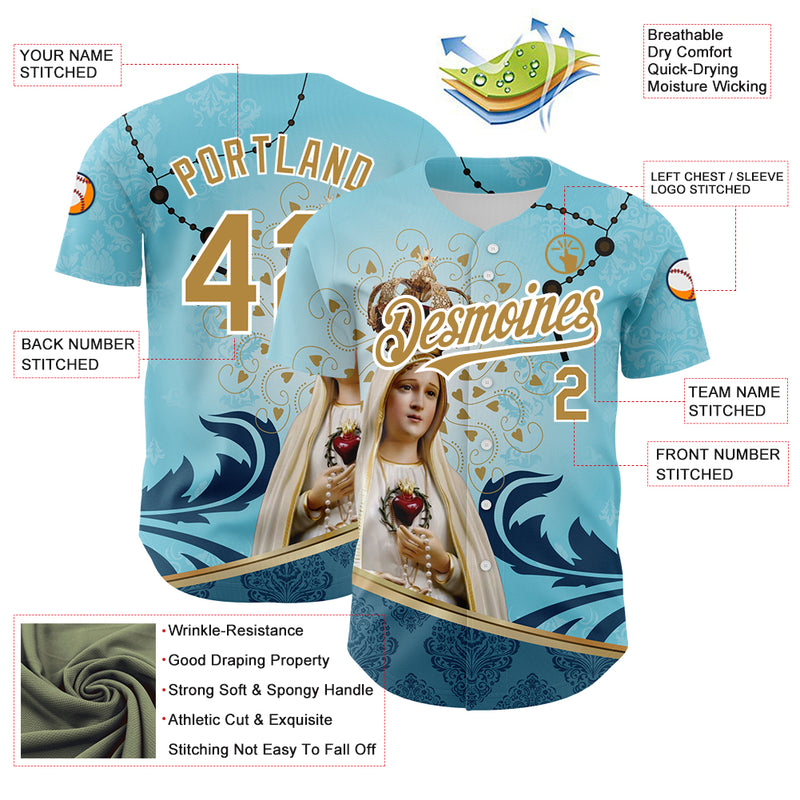 Custom Teal Old Gold-White 3D Pattern Design Religion Virgin Mary Authentic Baseball Jersey