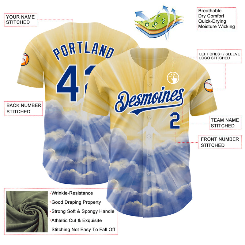 Custom Yellow Royal-White 3D Pattern Design Religion Jesus Christ Authentic Baseball Jersey