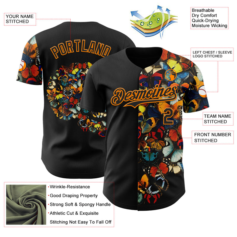 Custom Black Black-Bay Orange 3D Tobe Fonseca Butterfly Skull Collage Authentic Baseball Jersey