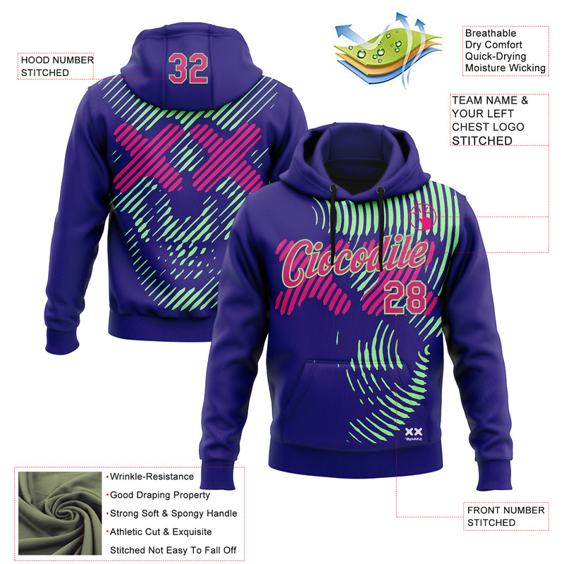 Custom Stitched Dark Purple Hot Pink-Pea Green 3D Revzzz Purple Death Skull Sports Pullover Sweatshirt Hoodie