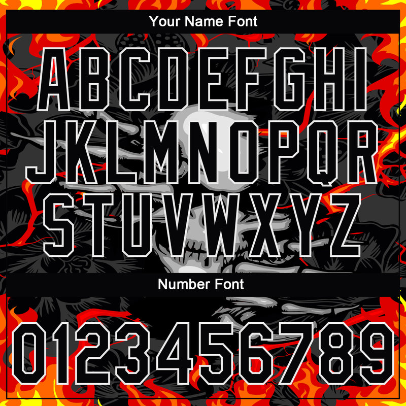 Custom Stitched Black Red Yellow-White 3D Pattern Design Flame Skull Sports Pullover Sweatshirt Hoodie