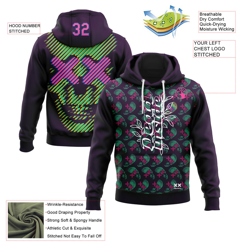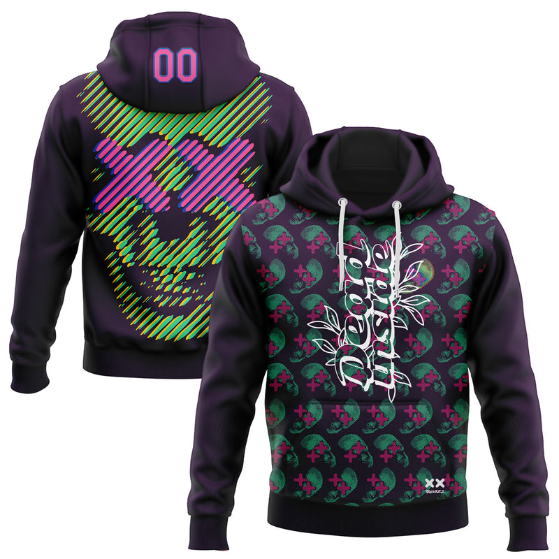 Custom Stitched Purple Pink-Thunder Blue 3D Revzzz Pretty And Dead Skull Sports Pullover Sweatshirt Hoodie