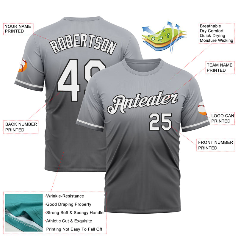 Custom Gray Steel Gray-Black Fade Fashion Performance T-Shirt