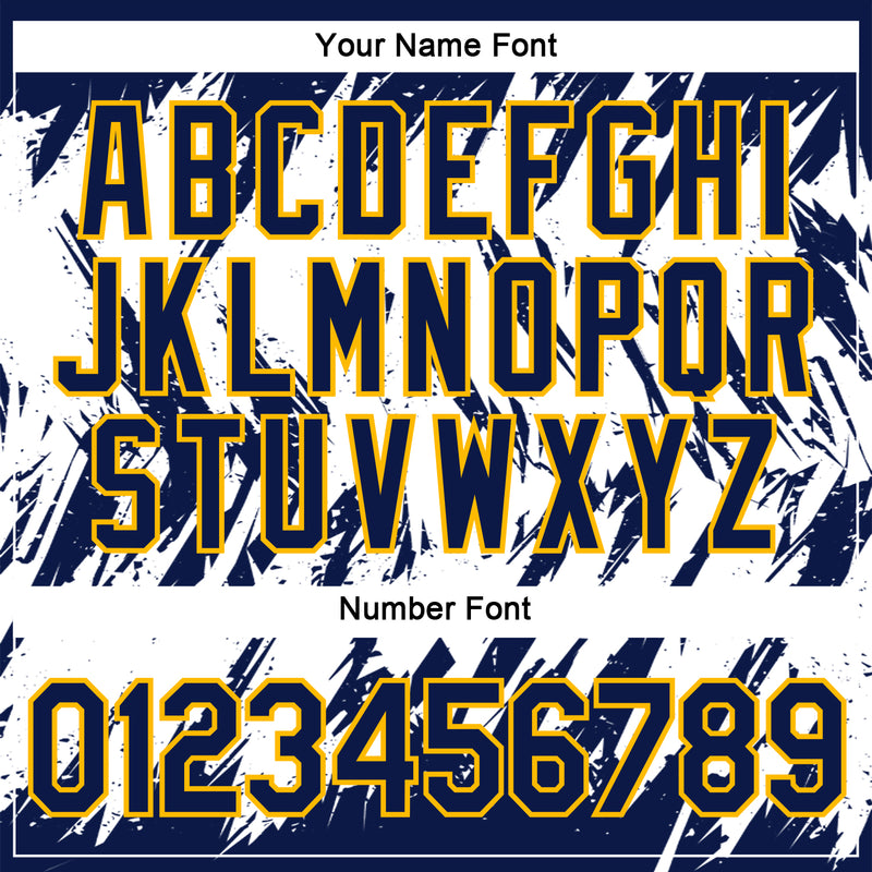 Custom Navy White-Gold 3D Pattern Design Abstract Sharp Shape Performance T-Shirt