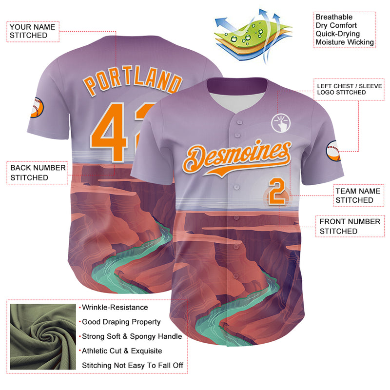Custom Purple Bay Orange-White 3D Pattern Design Patriotic American Symbol Grand Canyon And Colorado River Authentic Baseball Jersey
