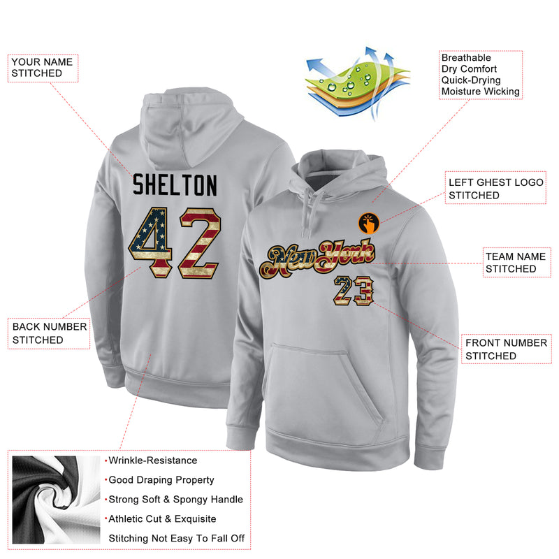 Custom Stitched Gray Vintage USA Flag-Old Gold Sports Pullover Sweatshirt Hoodie