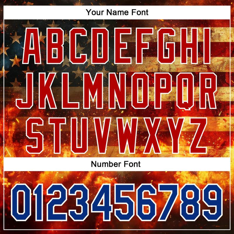 Custom Stitched Red Royal-White 3D American Flag Retro Distressed Flame Grunge Sports Pullover Sweatshirt Hoodie