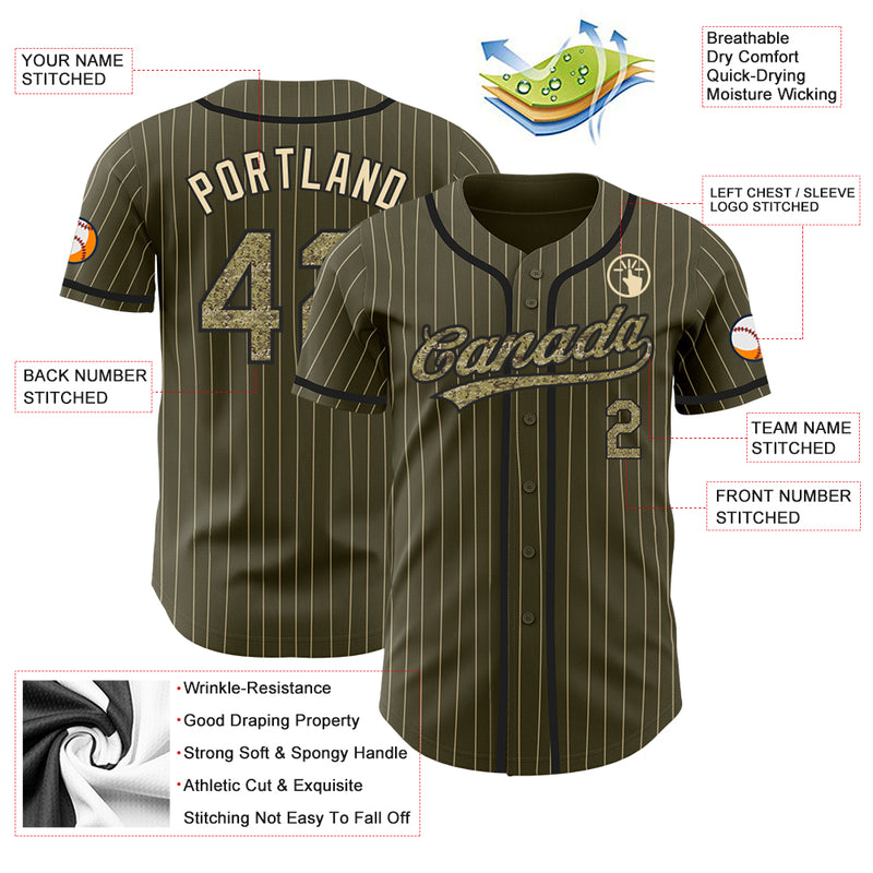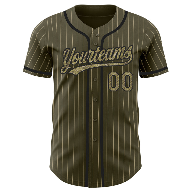 Custom Olive City Cream Pinstripe Camo-Black Authentic Salute To Service Baseball Jersey