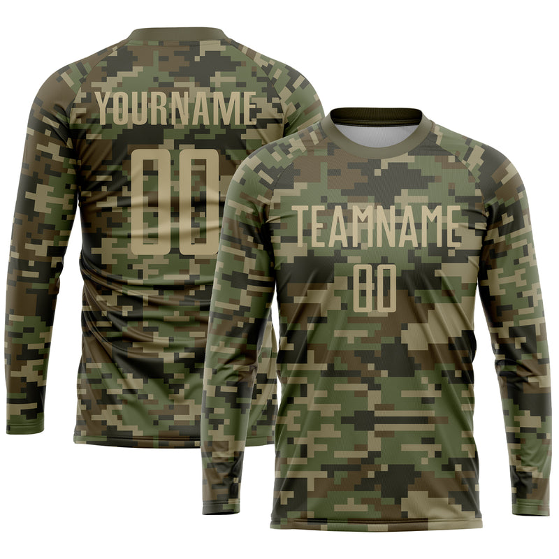 Custom Camo Vegas Gold-Olive Sublimation Salute To Service Soccer Uniform Jersey