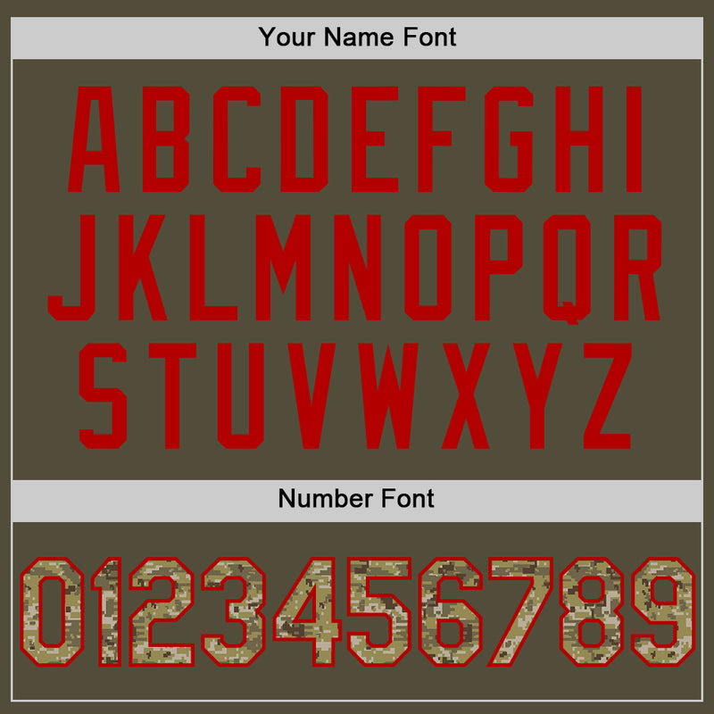 Custom Olive Camo-Red Mesh Authentic Throwback Salute To Service Baseball Jersey