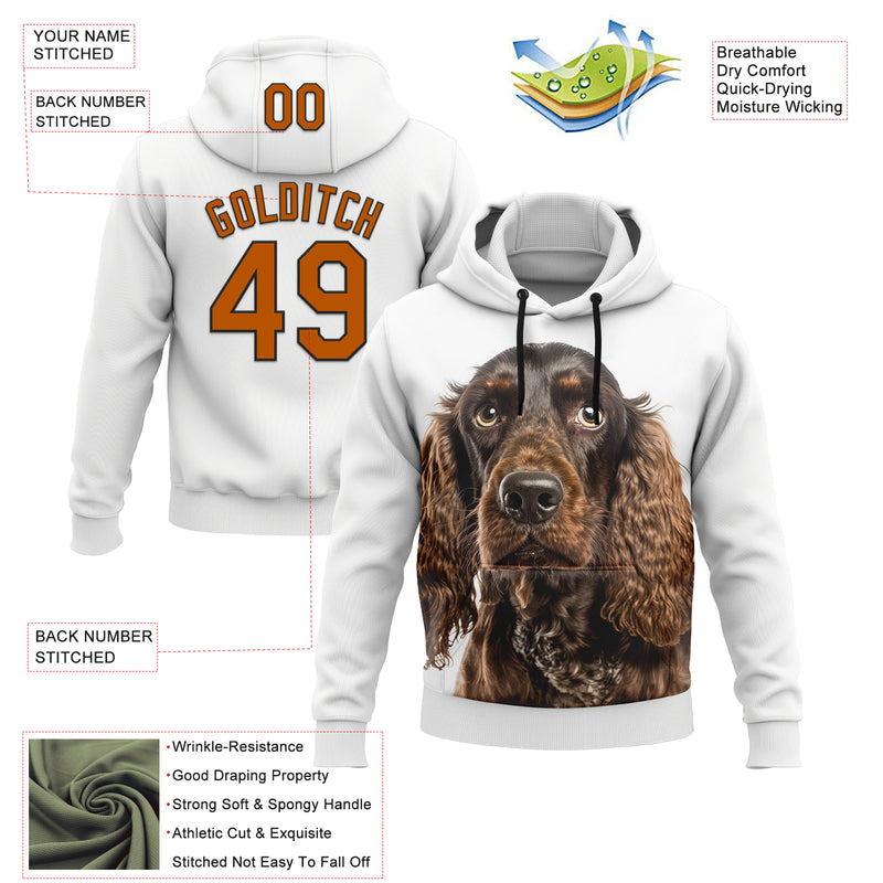 Custom Stitched White Texas Orange-Black 3D Pattern Design American Spaniel Dog Sports Pullover Sweatshirt Hoodie