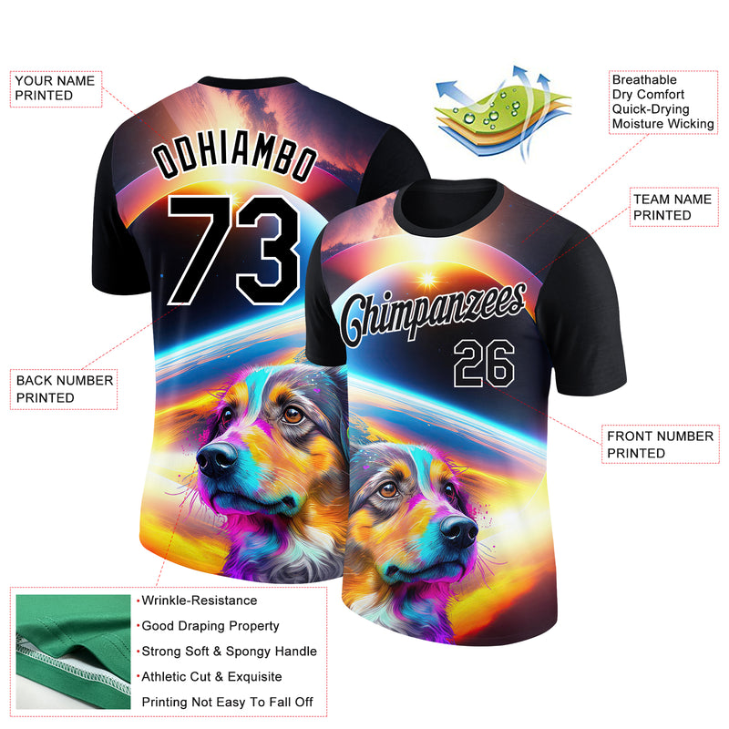 Custom Black White 3D Pattern Design Rave Animal Dog Performance T-Shirt