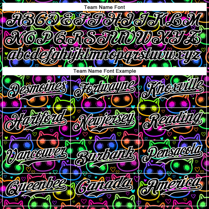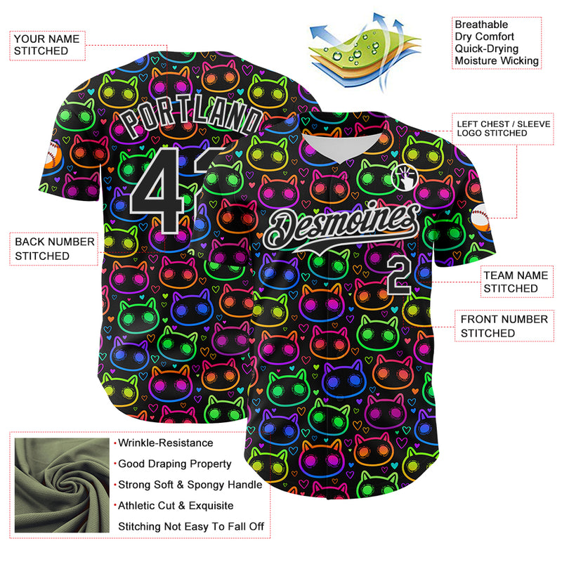 Custom Black White 3D Pattern Design Rave Psychedelic Neon Cartoon Cat Authentic Baseball Jersey