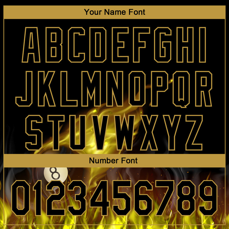 Custom Black Old Gold 3D Pattern Design Flame Billiards 8 Ball Performance Polo Shirt