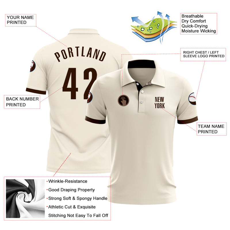 Custom Cream Brown Performance Golf Polo Shirt