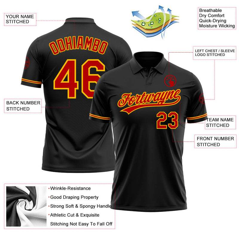 Custom Black Red-Gold Performance Vapor Golf Polo Shirt
