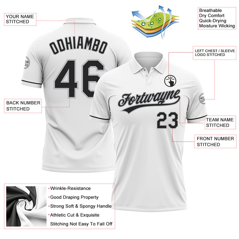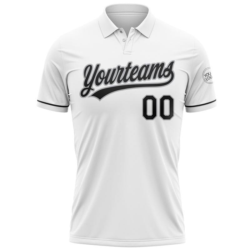 Custom White Black-Gray Performance Vapor Golf Polo Shirt