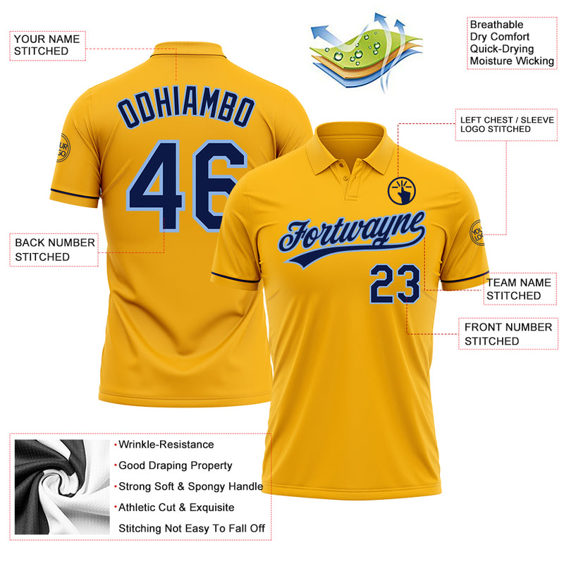 Custom Gold Navy-Light Blue Performance Vapor Golf Polo Shirt