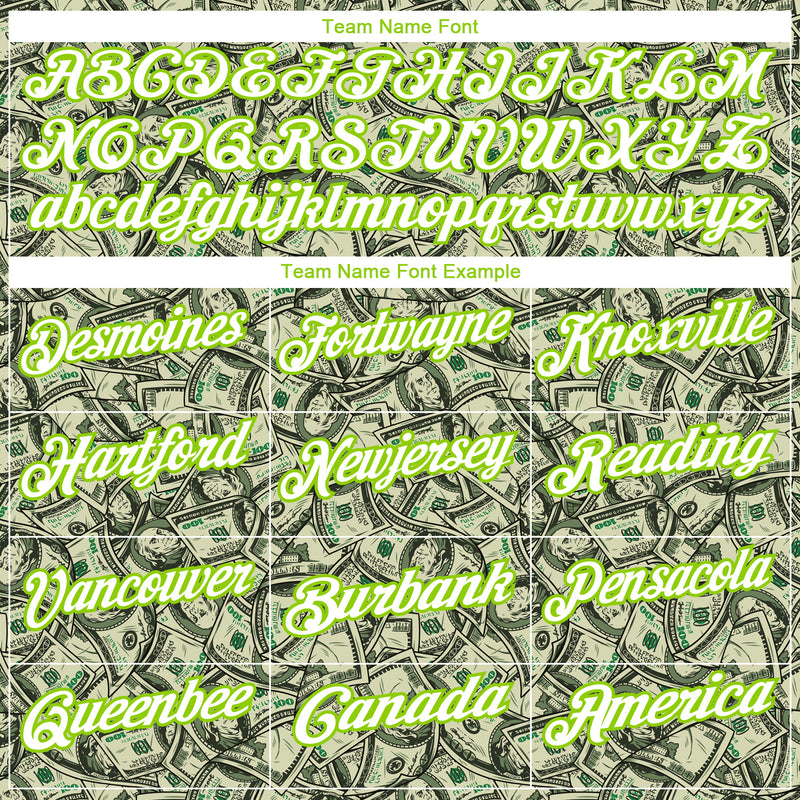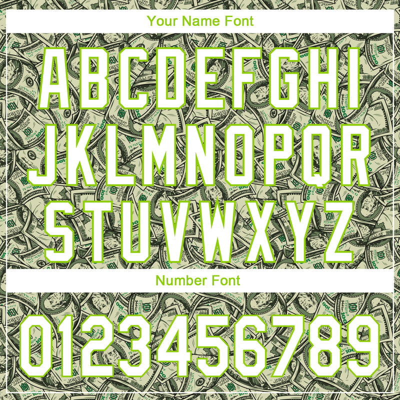 Custom Green White-Neon Green 3D Pattern Design Dollar Performance Golf Polo Shirt
