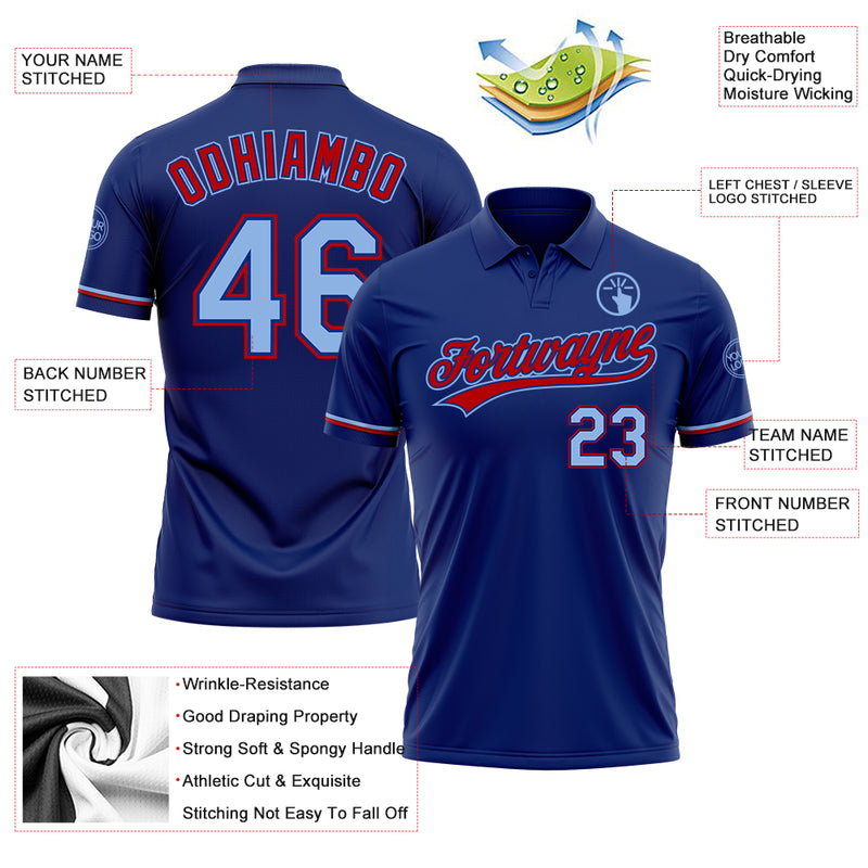 Custom Royal Light Blue-Red Performance Vapor Golf Polo Shirt