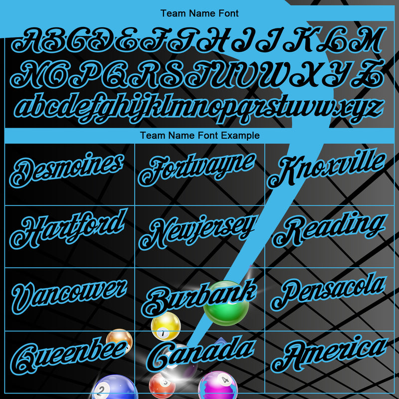 Custom Black Sky Blue 3D Pattern Design Billiards Performance Polo Shirt