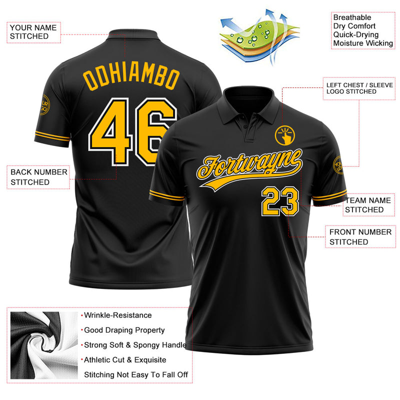 Custom Black Gold-White Performance Vapor Golf Polo Shirt