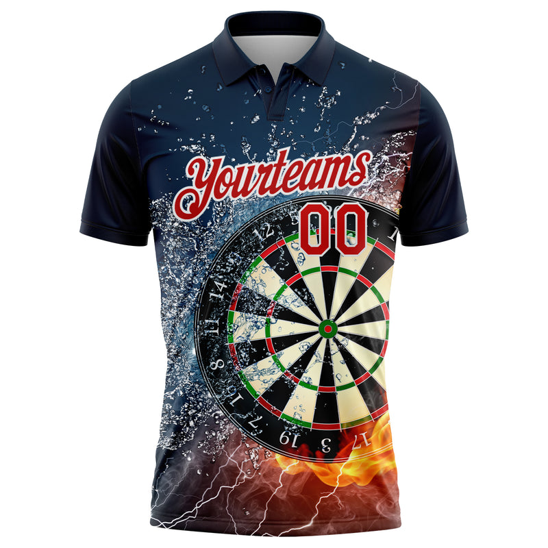 Custom Black Red-White 3D Pattern Design Flame Dart Board Performance Golf Polo Shirt