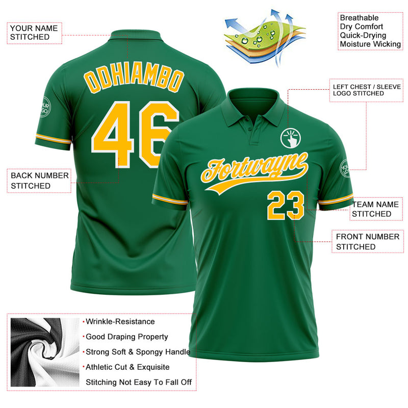 Custom Kelly Green Gold-White Performance Vapor Golf Polo Shirt