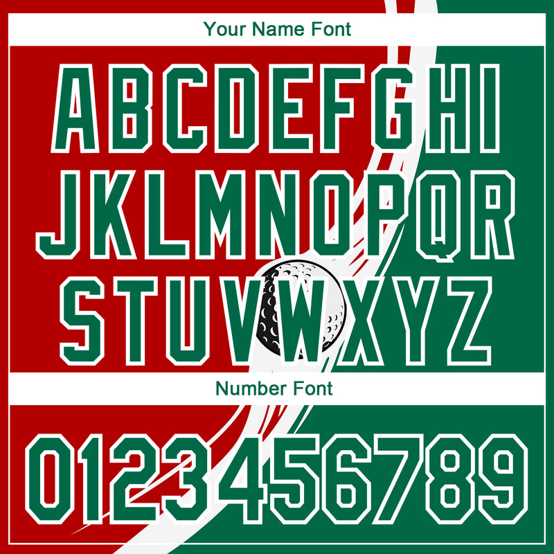 Custom Red Kelly Green-White 3D Pattern Design Golf Ball Performance Golf Polo Shirt