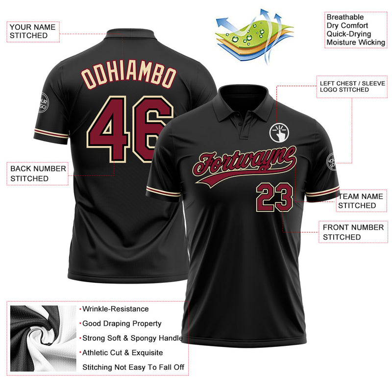 Custom Black Crimson-City Cream Performance Vapor Golf Polo Shirt
