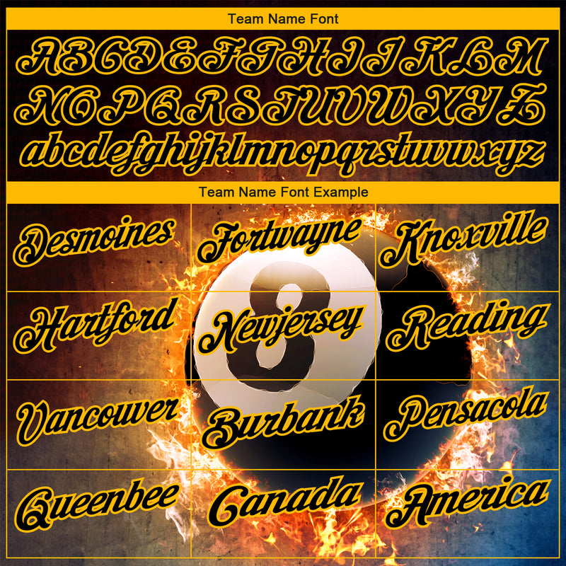 Custom Black Gold 3D Pattern Design Flame Billiards 8 Ball Performance Polo Shirt