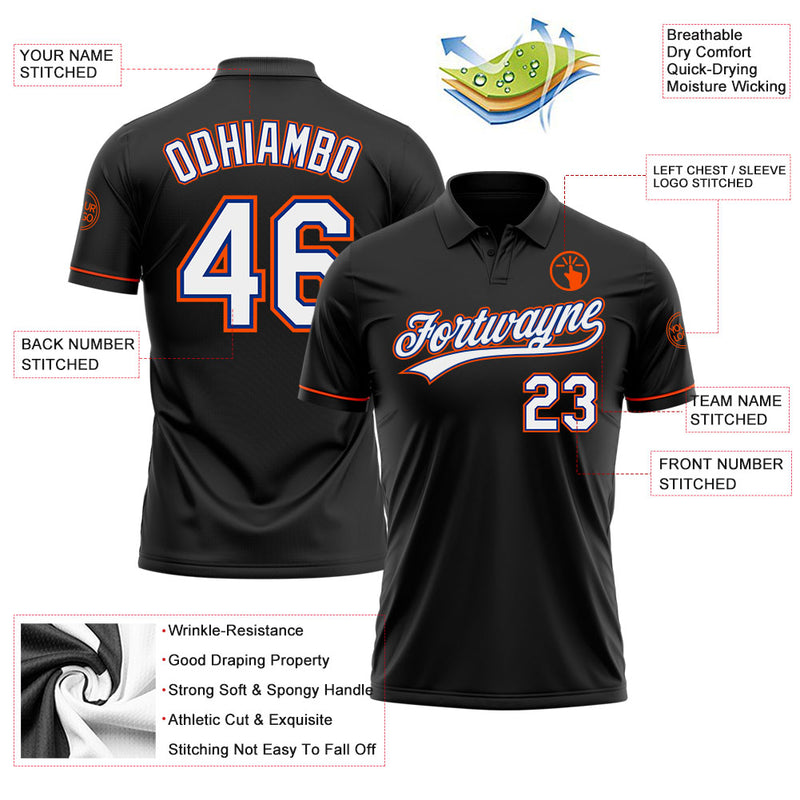 Custom Black White Royal-Orange Performance Vapor Golf Polo Shirt