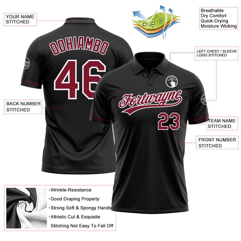 Custom Black Crimson-White Performance Vapor Golf Polo Shirt