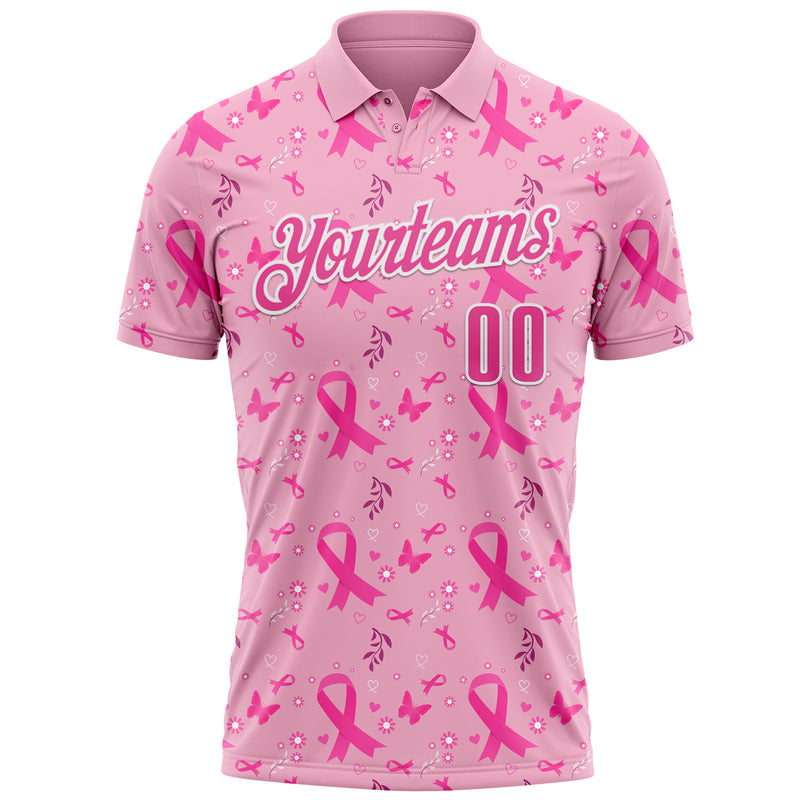 Custom Light Pink Pink-White 3D Pink Ribbon Breast Cancer Awareness Performance Polo Shirt