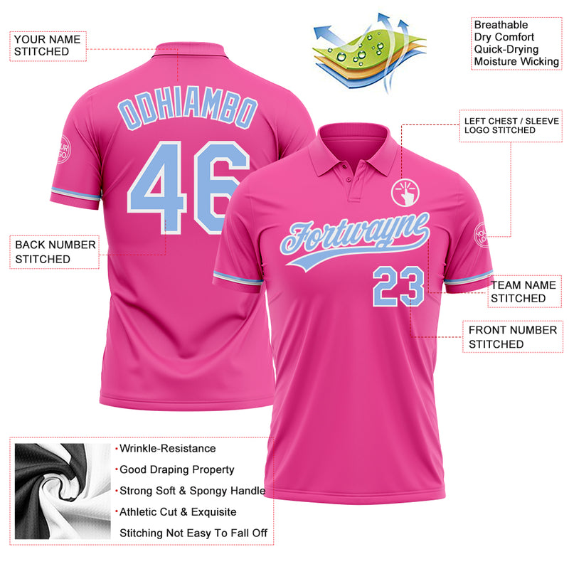 Custom Pink Light Blue-White Performance Vapor Golf Polo Shirt