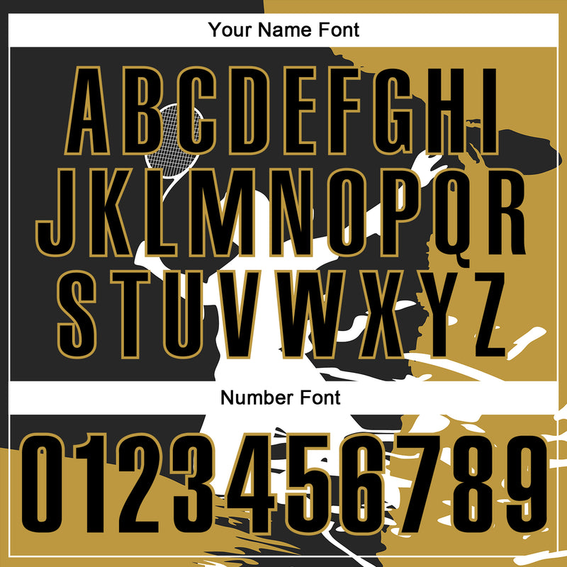 Custom Black Old Gold-White 3D Tennis Performance Polo Shirt