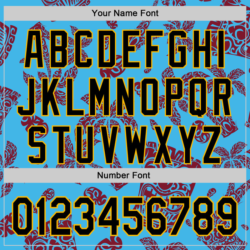 Custom Sky Blue Black Crimson-Gold 3D Polynesian Style Tiki Culture Islander Authentic Baseball Jersey